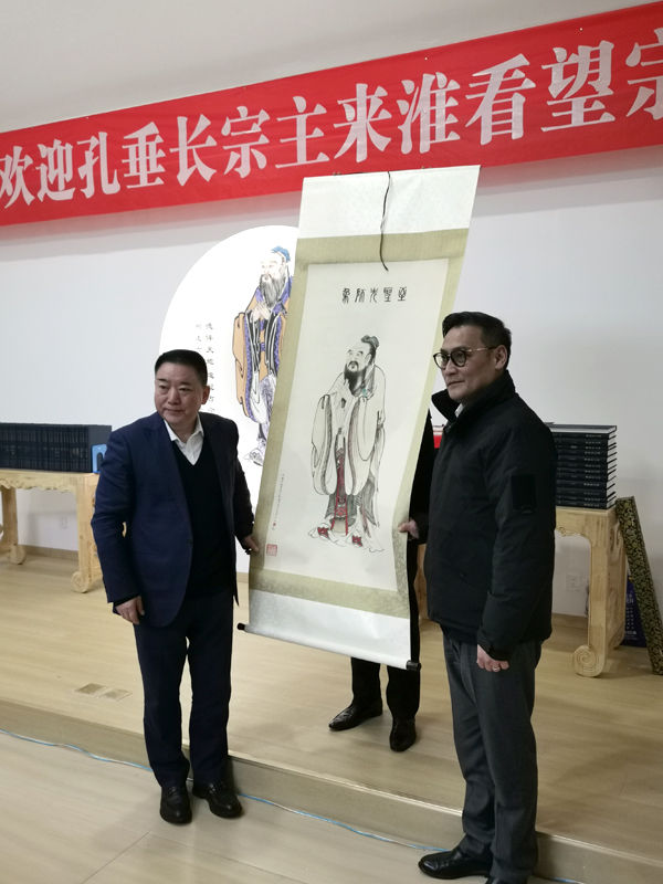 活動(dòng)之前,孔垂長(zhǎng)與孔令發(fā)共同為《孔子世家譜·淮北卷》及“孔子學(xué)堂”孔子像揭幕,象征家族文脈與儒家精神代代相傳。