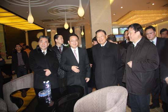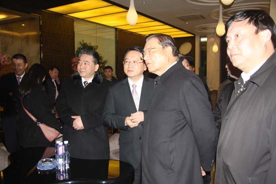 董事長孔令發(fā)(左一)、臺企聯(lián)副會長陳柏光(左二)、三三會長、原海基會董事長江丙坤(右二)淮南市委書記方西屏(右一)