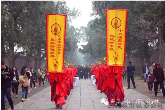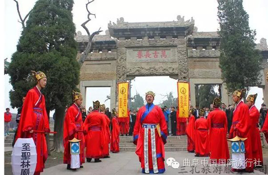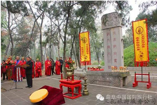 按照曲阜當(dāng)?shù)氐娘L(fēng)俗,在每年的清明節(jié),孔子后裔都要到孔氏的家族墓地孔林掃墓,祭拜先祖。浩浩蕩蕩的掃墓隊(duì)伍,就是一幅幅活生生的民俗畫,最生動地體現(xiàn)著中華民族古老的文化。清明節(jié)孔子后裔祭祖釋奠儀式,是三孔旅游服務(wù)公司根據(jù)《曲阜縣志》、《圣門禮志》、《闕里志》等有關(guān)記載,以歷史文化為根基,以對傳統(tǒng)清明節(jié)祭祀孔子相關(guān)儀式的生動再現(xiàn)為手段,推出的盛大祭祀活動,從而把印在塵封古籍中的古老風(fēng)俗,刻在千年石碑上的儒家文化,生動地展現(xiàn)在人們的面前。