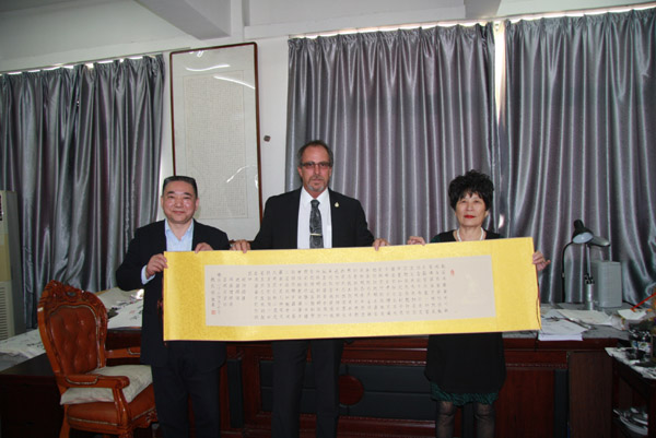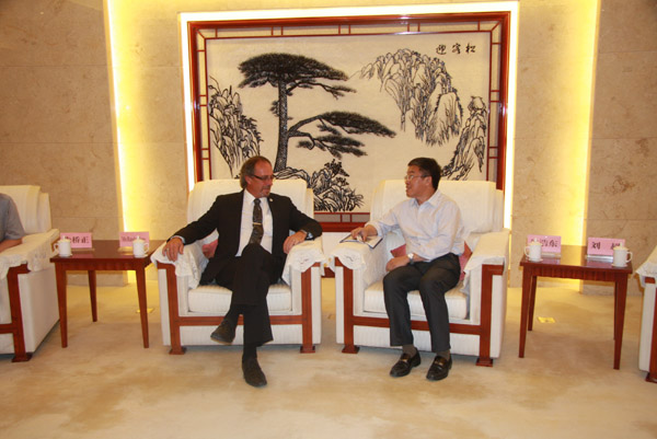 2015年9月28日,加拿大安大略省查塔姆肯特市市長 MR.Randy Hope(蘭迪市長)一行蒞臨集團(tuán)公司參訪考察,并與孔令發(fā)董事長進(jìn)行商務(wù)洽談。集團(tuán)公司董事長孔令發(fā)、總裁徐希慶、淮北華翊文創(chuàng)園項(xiàng)目總經(jīng)理蔡明鴻等陪同參觀。