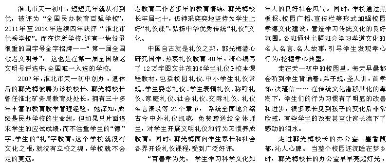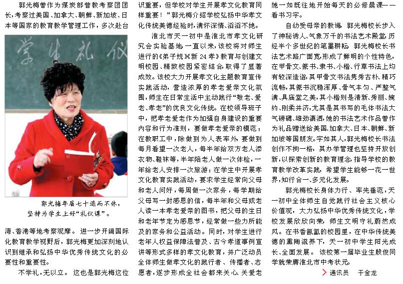 媒體報(bào)道:天一初中校長(zhǎng)郭光梅崇“禮”樹人立校魂 寄身于翰墨 醉心于教育