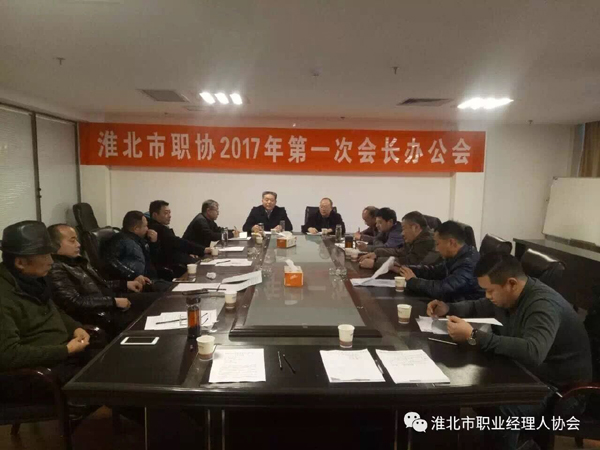 2017年1月8日下午,淮北市職業(yè)經(jīng)理人協(xié)會在天象集團(tuán)會議室召開2017年度第一次會長辦公會,天象集團(tuán)董事長、淮北職業(yè)經(jīng)理人協(xié)會會長孔令發(fā)出席會議,并在會上發(fā)表重要講話。