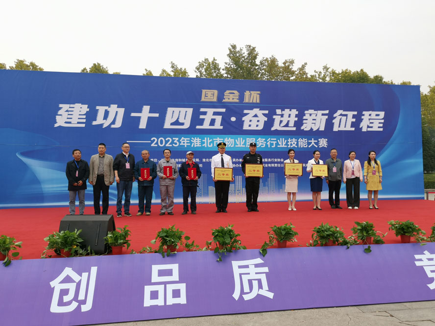 為弘揚(yáng)勞動(dòng)精神、工匠精神,展示物業(yè)工作者的專業(yè)風(fēng)采和精神風(fēng)貌。2023年10月19日上午,2023年淮北市物業(yè)服務(wù)行業(yè)技能大賽在市體育場(chǎng)隆重舉行,天象物業(yè)代表隊(duì)一行14人參加了活動(dòng)賽事,經(jīng)過多日的苦訓(xùn)備戰(zhàn),天象物業(yè)公司在參加的三個(gè)比賽項(xiàng)目中,兩項(xiàng)獲獎(jiǎng),維修組榮獲二等獎(jiǎng)、秩序組榮獲三等獎(jiǎng),天象物業(yè)公司榮獲優(yōu)秀組織獎(jiǎng)。