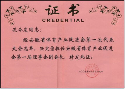 2009年孔董事長(zhǎng)獲評(píng)省體育理事會(huì)副會(huì)長(zhǎng)