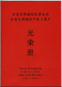 2011年安徽省文明誠信民營企業(yè)
